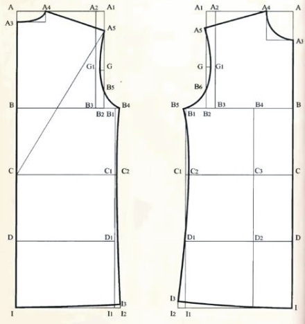 Построение спинки Строим на основе спинки базовой конструкции куртки. CC3 = BB6 = DD2 = 10cm. СЗС 4 = СЗС5 = глубина вытачки = 2 см. Проводим линию задней талиевой вытачки по точкам С 4 В6 С5 D2. Подробнее...